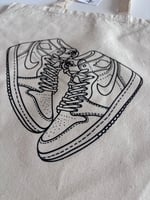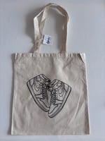 Pressed on a light weigh; available in tan & white canvas tote bag. Design can be customized by customer using paint/markers.