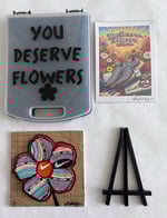 Custom 8inch box includes, plastic black easel, custom insert and attachments to hang the canvas on the wall.