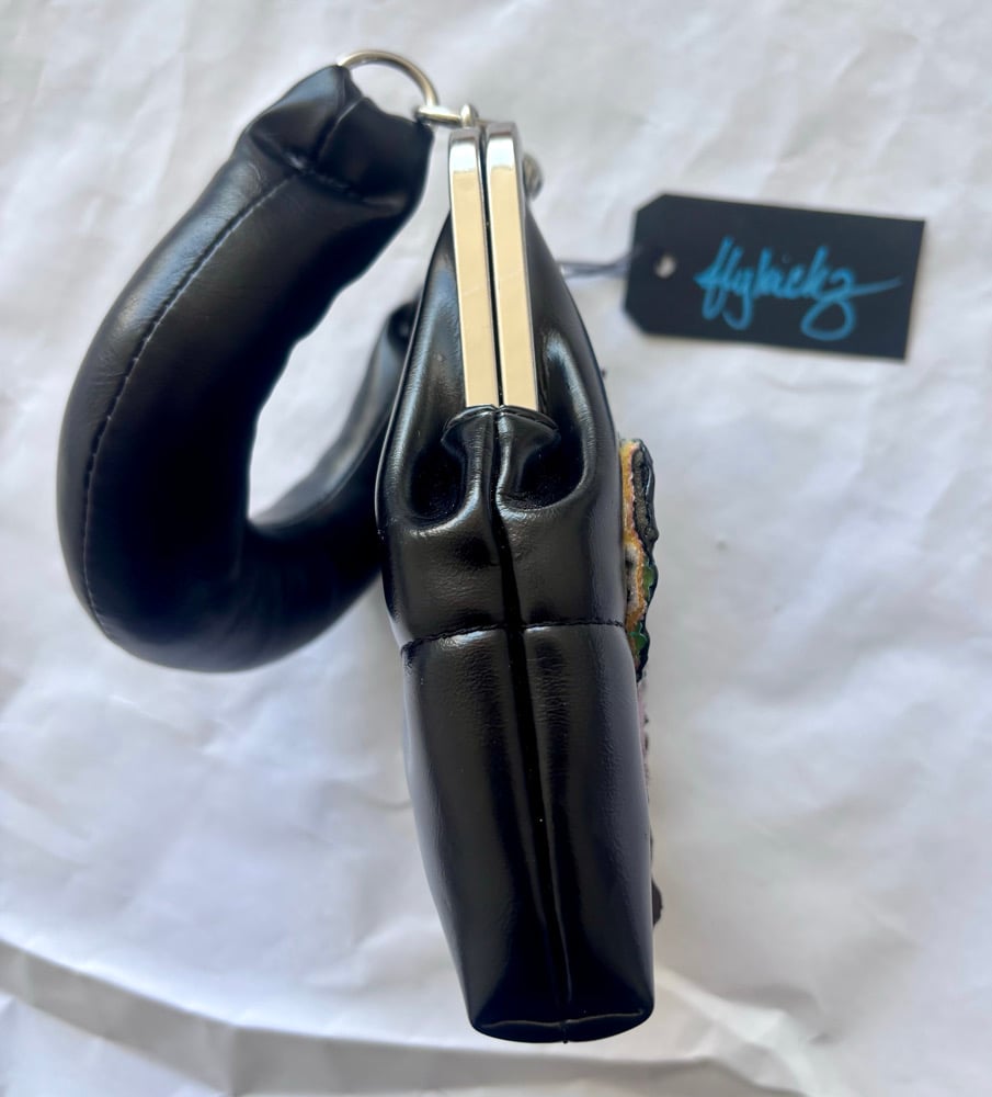 Custom black kiss lock faux leather purse created with Nike Air Max 97 (Have a Nike Day) sneakers